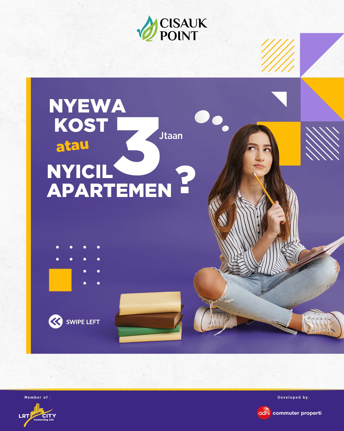 Cisauk Point is a real estate company. my role in this company is as a graphic designers and my responsibilities such as making all graphics design needs, digital and printing like pamphlets, business cards, banners, posters, social media content, etc.